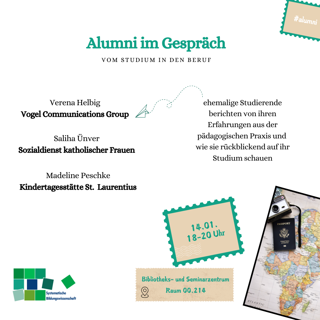08.01.2026Der Lehrstuhl für systematische Bildungswissenschaft lädt Sie herzlich ein zur Veranstaltung "Alumni im Gespräch"