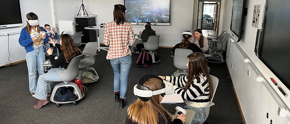 01.03.2024Bei einem Besuch eines Enrichment-Kurses am 1. März 2024 im Media Education and Educational Technology Lab (MEET) nutzten Schülerinnen und Schüler die Möglichkeiten von Virtual Reality (VR), um reale Exkursionen vorzubereiten und Vergleiche zwischen „echter“ und virtueller Realität anzustellen.